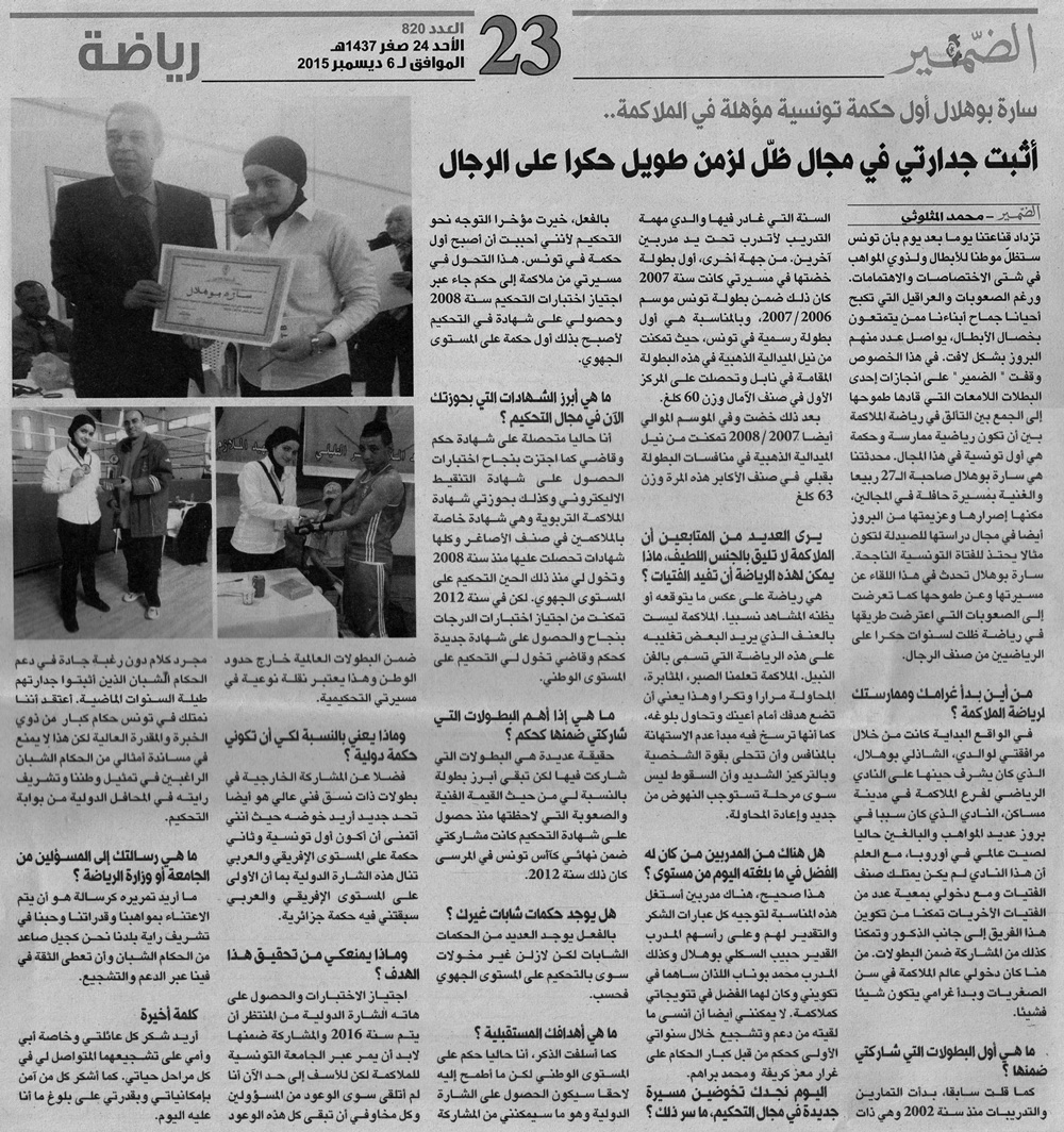6. الحياة المصرية (15 ماي 2017) سارة بوهلال ثاني عربية تحصل على شارة التحكيم الدولي