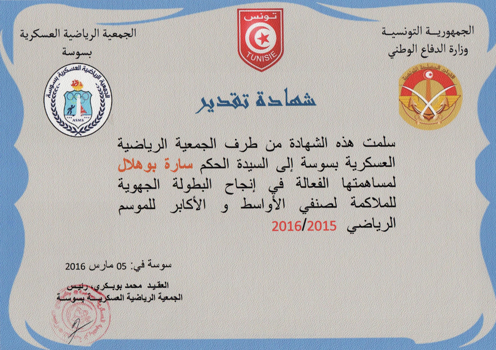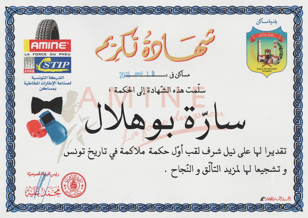 11. موقع آخر خبر (16 ماي 2017): تحصلت على الصنف الأول: سارة بوهلال أول حكمة ملاكمة تونسية والثانية عربيا